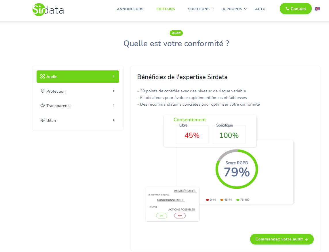 Indeed, thanks to the development of its own audit system, Sirdata now provides all website editors with a precise and complete answer to questions related to their online compliance.