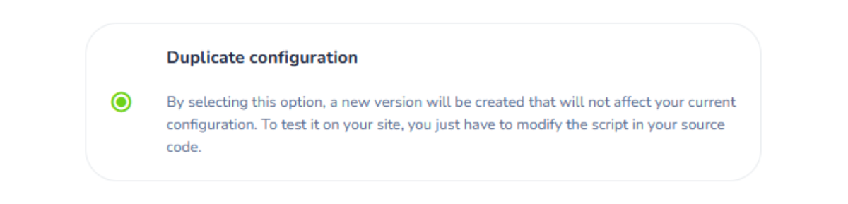 - If you want to test the new design before changing definitively, no problem, choose the βDuplicate your configurationβ CMP option in step 6 of the configuration process: