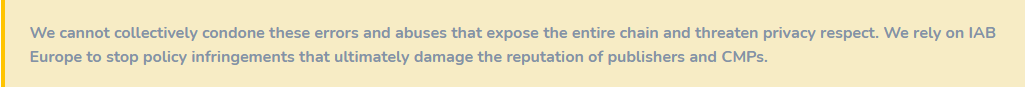 As a result, many publishers who do not feel they must implement these systems are tempted to continue to systematically call on targeted advertising tags, or even to go backwards after deploying a CMP for example.