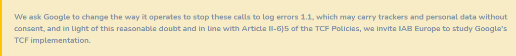 Google should not, in our opinion, simply ask its publisher partners for prior consent to use its ad tags. It would be more judicious to fully implement TCF, and its methods, and thus condition the final banner calls according to the Internet users choices, even if the initial scripts are injected systematically, by mistake or by mimetism...