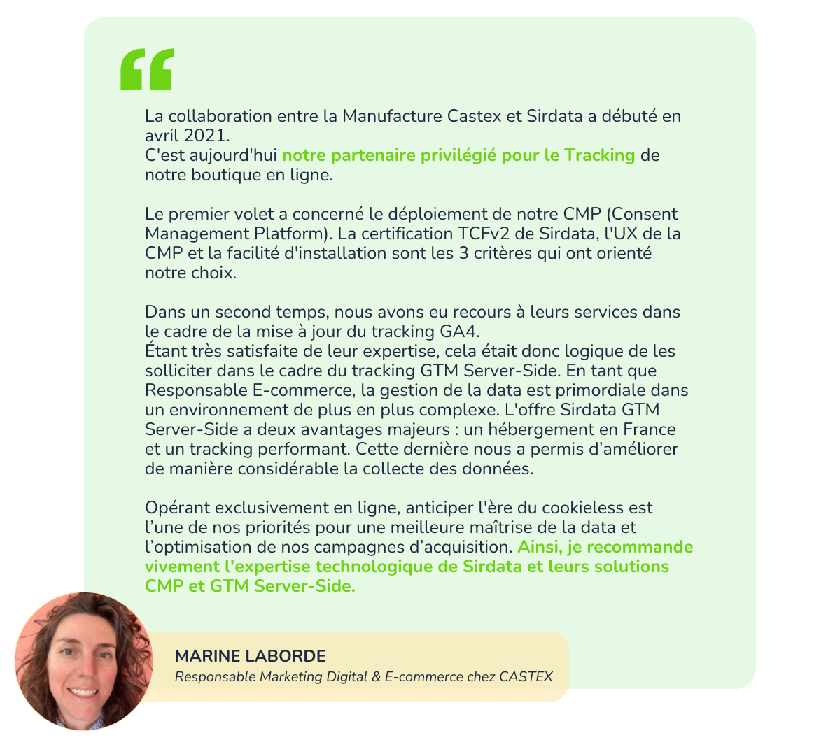Dans le but d'optimiser ses performances en ligne et sa visibilité, La Manufacture Castex, a mené une expérience d'un mois pour évaluer deux solutions GTM Server Side, dont celle proposée par Sirdata, par rapport à son intégration GTM classique non server side.