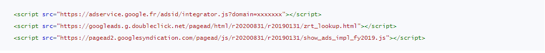 Il convient de noter que, dans les deux cas, l'appel de bannière qui est initié par le script show_ads_impl_fy2019.js donne accès à Google à ses cookies :