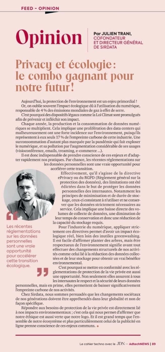 En affirmant notamment, qu'aujourd'hui il faut voir les règlementations sur la privacy comme de vraies opportunités pour accélérer la transition écologique !